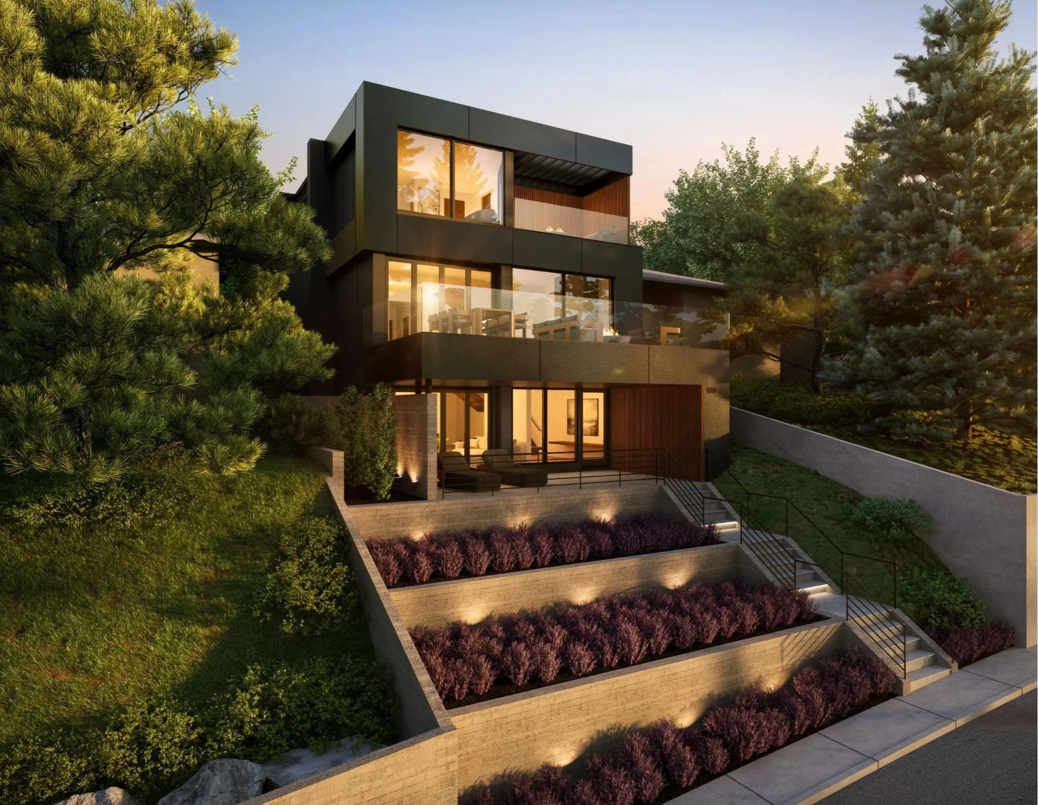 Located in Bridgeland, this 2,800 square foot modern hillside residence is designed to respond to the natural slope while capturing views of Calgary’s skyline and the Rocky Mountains. The home steps with the grade to reduce its visual mass from the street and opens toward the south with expansive glazing and elevated outdoor spaces. Clean lines and articulated massing create a refined contemporary presence that connects architecture, landscape, and city.