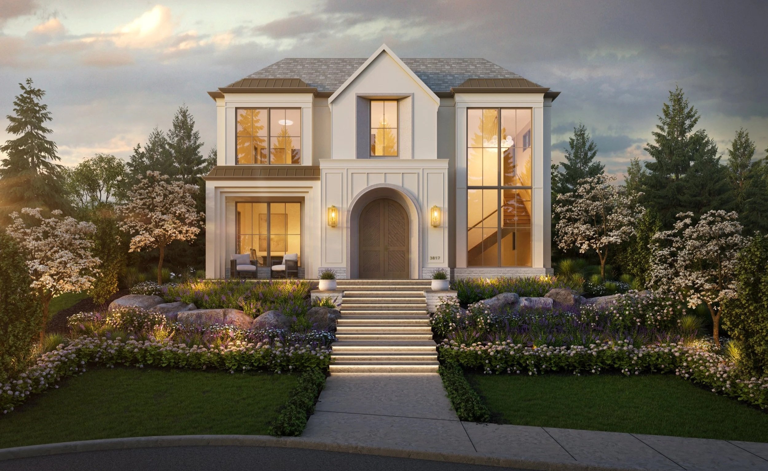 Located in Elbow Park, Calgary, Alberta, this residence is anchored by a bold central arch that defines the façade and establishes a composed sense of arrival. Symmetrical massing and restrained detailing create clarity and proportion, while refined material transitions and metal roof accents add depth and quiet articulation to the overall composition.